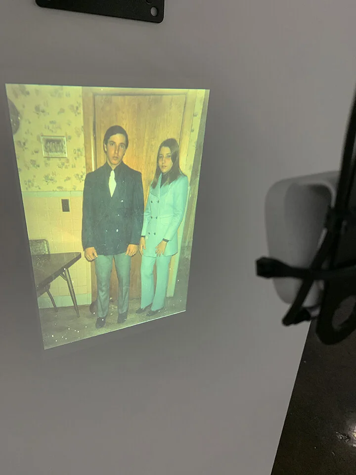 is an installation project that responds to the relationship between rituals of family photography and evolving methodologies of picture-taking and display. Gathering framed objects, a 35mm slide projection, and digital images selected by Google’s AI-driven Clips device, the resulting installations address the inevitable failures—both technical and conceptual—of cameras to accurately document a family unit over time. Restaging and re-presenting images from three generations in my own family, I inevitably create a multi-format archive that insists even the most banal family photograph is by its nature, performative.